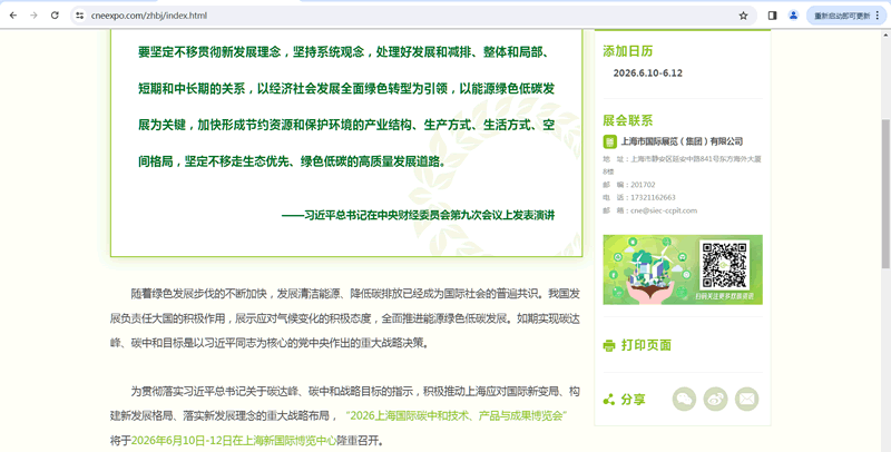 为贯彻落实习近平总书记关于碳达峰、碳中和战略目标的指示,积极推动上海应对国际新变局、构建新发展格局、落实新发展理念的重大战略布局,“2026上海国际碳中和技术、产品与成果博览会”将于2026年6月10日-12日在上海新国际博览中心隆重召开。