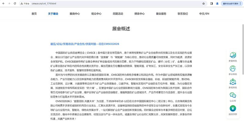 CMSCE2026以“数智领航 共赢未来”为主题,于2026年6月10-12日在北京中国国际展览中心(顺义馆)举行。北京海闻展览有限公司将携手多家权威组织机构及行业龙头,汇聚从资源开发、设备制造到供应链服务的中外领军企业与创新标杆,全景式呈现当今全球矿山行业现代化、智能化、绿色化发展水平,一站式解锁矿山全产业链创新发展全貌。同时展会还将举办丰富多样的项目对接、论坛交流活动,强化中外参展企业品牌宣传、经贸洽谈与产业一体化合作。诚邀全球矿山行业同仁相聚北京,共探发展新路径,共享合作新机遇,共赢产业新未来!