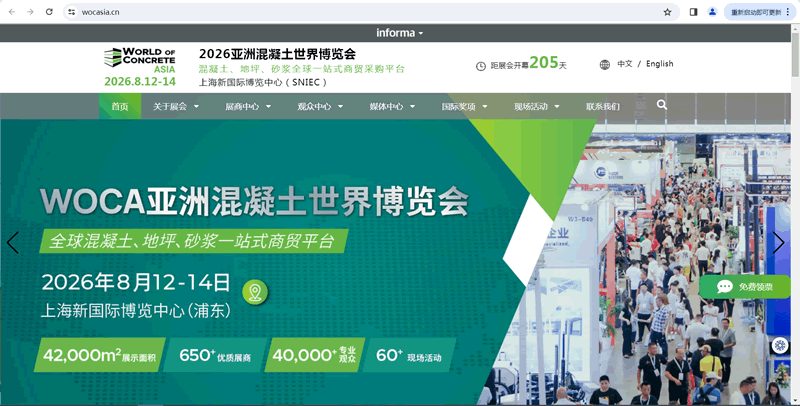 上海智能建筑展|混凝土展|地坪展-2026亚洲混凝土世界博览会