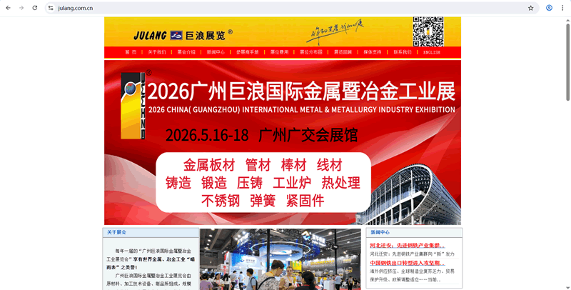 一年一度的广州巨浪国际金属暨冶金工业展览会 ,是久负盛名、全球瞩目的业界盛会,经过25年的努力,展会得到太钢、宝武钢铁、鞍钢联众、河北钢铁集团(邯钢)、湘钢、浦项、新日铁、马钢、新冶钢、珠江钢管、天津友发钢管集团、冠洲、华美、新华联合冶金控股集团、韩钢、肇庆艾格特,乐从钢铁世界、天津海钢、新冠洲、首钢、道德企业、联创、唐山智恒达、广东中创誉、山东冀伟、黄山维斯加嘉、恒丰、深圳大工人、聚鑫源、韩江、华新丽华、KOS、东莞亚昱、上海春茗、METALCOVO、博兴福升源、浙江严氏、浙江缙云韩立、恒基、冠县前进、山东恒丰、山东双发、省权、拓倍迈、罗博派克、晋诚、金镦、乔升、金凯达、国和、重庆江东、深圳荟俊(DSR)、美国福禄克、中南炉业、艾亦特、吉邦、实密、金阳、比利时考克利尔、一汽、沈阳新松、ABB、易普森、松江离心铸造、牛津仪器、诚联压铸、起昌铸造、星精、马波斯、特妥机械设备、上海善佳、啸能激光、深圳市奥松、威夫斯(wafois)、努曼机械(Numalliance)、 荣达发等等知名企业积极参与。