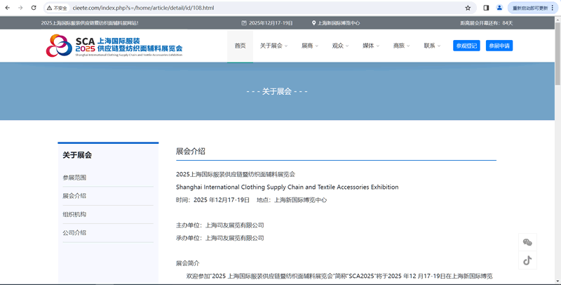 欢迎参加“2025 上海国际服装供应链暨纺织面辅料展览会”简称“SCA2025”将于2025 年12 月17-19日在上海新国际博览中心隆重举行。 在全球经济一体化过程中,生产分工日益细化,服装业生产布局、结构调整和升级也紧跟全球价值链升级。SCA2025始终坚持以品牌发展的理念、时尚创意的展品、多元落地的活动,推动服装供应链产业的发展。