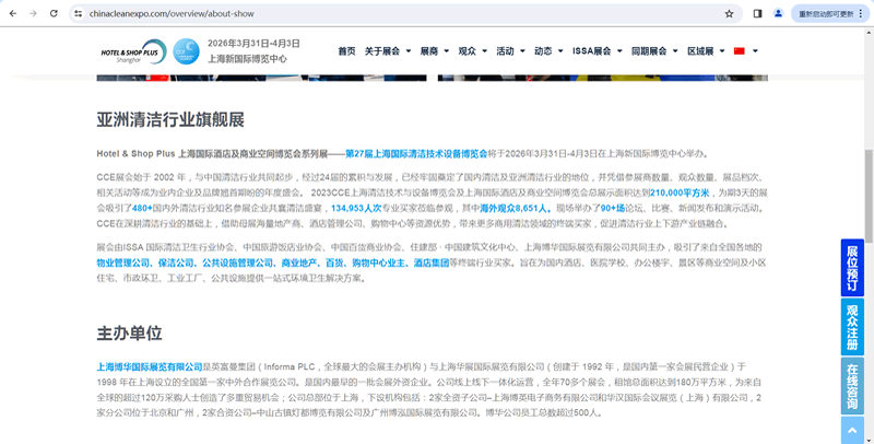 信息转载地址:https://www.chinacleanexpo.com https://www.chinacleanexpo.com/overview/about-show https://www.chinacleanexpo.com/exhibiting/service