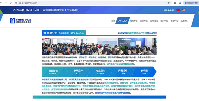 SNBE 2026深圳国际新能源电池产业展览会将于2026年08月26-28日在深圳国际会展中心(宝安新馆)与“SETE 2026深圳国际储能技术展览会”、“SCBE 2026深圳国际充电桩及换电技术展览会”三展联动、同期举办,本次展会将重点展示各系列成品电池、组合电池、动力电池及管理系统、电池材料及零部件、智能工厂及生产设备与测试仪器、太阳能氢能燃料电池及产业链、电源产品及能源电子器件、回收再生技术设备/三废处理设备、电池测试与认证机构等新能源电池全产业链创新产品与技术。作为华南地区领先的新能源电池产业平台,展会将汇聚超600家全球领先储能产业链核心供应商,预计展会规模将超4万㎡,全力打造华南新能源电池产业链专业盛会。