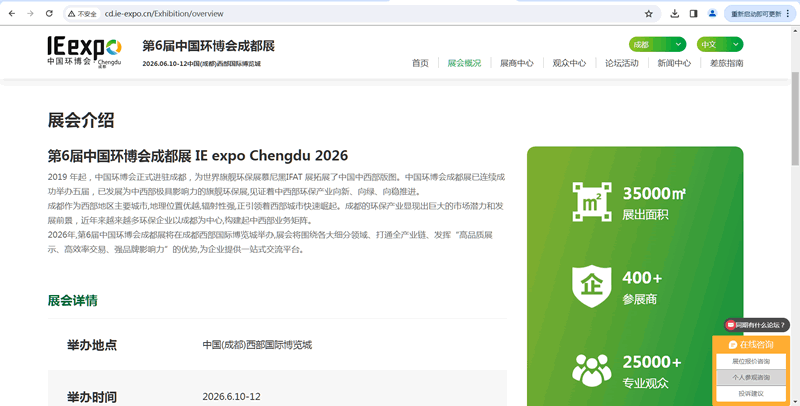 2026年,第6届中国环博会成都展将在成都西部国际博览城举办,展会将围绕各大细分领域、打通全产业链、发挥“高品质展示、高效率交易、强品牌影响力”的优势,为企业提供一站式交流平台。