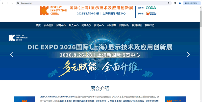 DIC EXPO国际(上海)显示技术及应用创新展2026.8.26-28上海新国际博览中心举行,上海奥韵广告SINCE2007聚焦显示展展台设计、半导体显示展展台搭建、光电显示展展会设计、新型显示技术展展会搭建、触控展展位装修、电子材料及装备展展位设计、商用显示展展位搭建。
