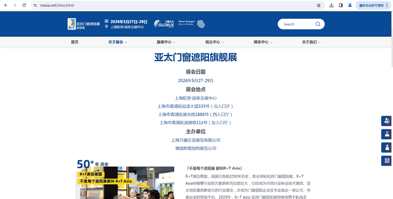 第21届R+T Asia亚洲门窗遮阳展将于2026年5月27-29日在上海虹桥国家会展中心举办,上海奥韵SINCE2007持续聚焦R+T Asia亚洲门窗遮阳展展台设计搭建,门窗展展位装修,遮阳展展会搭建,门窗遮阳展展会策划设计.