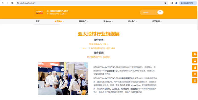 DOMOTEX asia/CHINAFLOOR中国国际地面材料及铺装技术展览会将于2026.5.27-29上海国家会展中心举行,上海奥韵SINCE2007持续聚焦地材展展台设计、上海地材展展台搭建、地面材料展展会设计、地板展展会搭建、地毯展展位装修、上海地板展展位设计、墙面材料展展台设计、装饰材料展展台搭建。