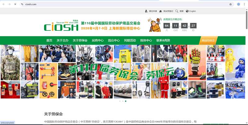 中国国际劳动保护用品交易会,中文简称“劳保会” 英文简称“CIOSH”,前身为原商业部纺织品局主办的全国性劳保行业供应会,90年代起由中国纺织品商业协会主办。自1966年创办发展至今,已经成功举办100多届的劳保会,参展产品囊括从头到脚的安全防护用品。目前单届参展企业超过1,600家、展示面积超过80,000平方米、专业观众人数超过40,000人。