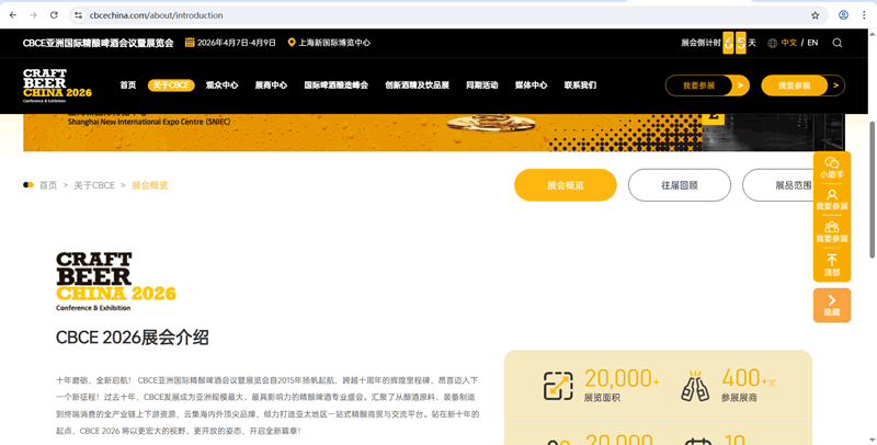 十年磨砺,全新启航! CBCE亚洲国际精酿啤酒会议暨展览会自2015年扬帆起航,跨越十周年的辉煌里程碑,昂首迈入下一个新征程!过去十年,CBCE发展成为亚洲规模最大、最具影响力的精酿啤酒专业盛会。汇聚了从酿酒原料、装备制造到终端消费的全产业链上下游资源,云集海内外顶尖品牌,倾力打造亚太地区一站式精酿商贸与交流平台。站在新十年的起点,CBCE 2026 将以更宏大的视野、更开放的姿态,开启全新篇章!