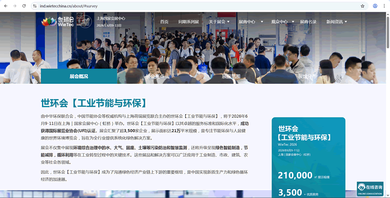 世界环境博览会简称世环会(wietec)2026年6月9-11日在上海国家会展中心举办,上海奥韵Since2007持续聚焦世环会展台设计,环保展展台搭建,国际水展展会设计,泵阀展展会搭建,绿色智造展展位设计,仪器仪表展展位搭建,适老康养展展位装修,管道系统展展台装修,暖通舒适展展会装修,wietec展展台搭建.