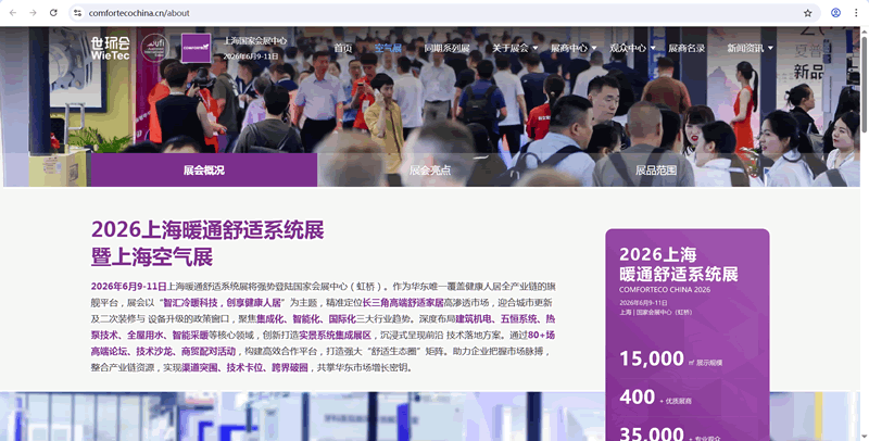 2026上海暖通舒适系统展暨上海空气展集合冷暖风水智系统集成解决方案与技术应用的综合性专业展会6月9-11日登陆上海国家会展中心虹桥盛大开幕,上海奥韵Since2007持续聚焦热泵展展台设计、舒适系统展展台搭建、暖通空调展展会设计、空气展展会搭建、暖通舒适系统展展位设计装修、COMFORTECO CHINA展位布展。