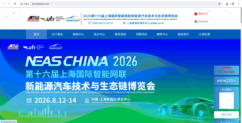 由英佛会展携手中国电工技术学会、上海市汽车工程学会及相关单位共同主办的“2026第十六届上海国际智能网联新能源汽车技术生态链博览会(NEAS CHINA 2026)”,将于2026年8月12日至14日在上海新国际博览中心隆重举办,目前展会已获得UFI权威认证。